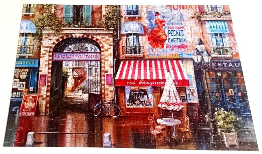 Este es un puzzle de 500 piezas publicado en la colección del 2005 por Educa, y es un cuadro del artista londinense Mark St. John. Este artista tiene un estilo romántico para pintar imágenes de ciudades como Nueva York, Berlín... pero en especial de París. Aunque buscamos la localización del Passage Fontaine en internet, no pudimos encontrarla. Lo que descubrimos fue la gran cantidad de galerías y pasajes comerciales en París como el de esta imagen. La mayoría son acristaladas y fueron construidas en el siglo XIX, en su interior se esconden tiendas, restaurantes, cafés, entre otros. El más antiguo fue construido en 1799 y se llama Passage des Panoramas y aún continúa funcionando. Entre las más emblemáticas encontramos la Galería Vivienne y la Galería Véro Dodat. Algunos se dedican a un tipo de comercio... como el Passage Brady (conocido también como Little India) ya que tiene comercios y restaurantes indios y paquistaníes. El Passage de Caire tiene mayoristas de prêt-à-porter, y fabricantes de tejidos; los anticuarios podemos encontrarlos en el Passage Verdau. La particular Galería Colbert, del 1823, no tiene tiendas. Por ella se puede acceder al Institut National d’Histoire de l’Art y al Institut National du Patrimoine. La vez que estuvimos vimos algunas, pero la próxima vez intentaremos visitar como mínimo, las principales.